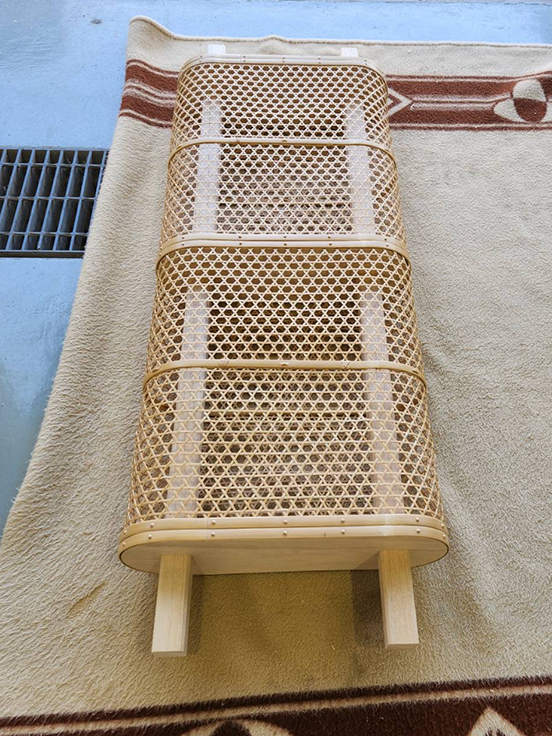 柱巻きを巻き上げる軸材は、軸を桐材で製作後、竹籠で巻き上げた。